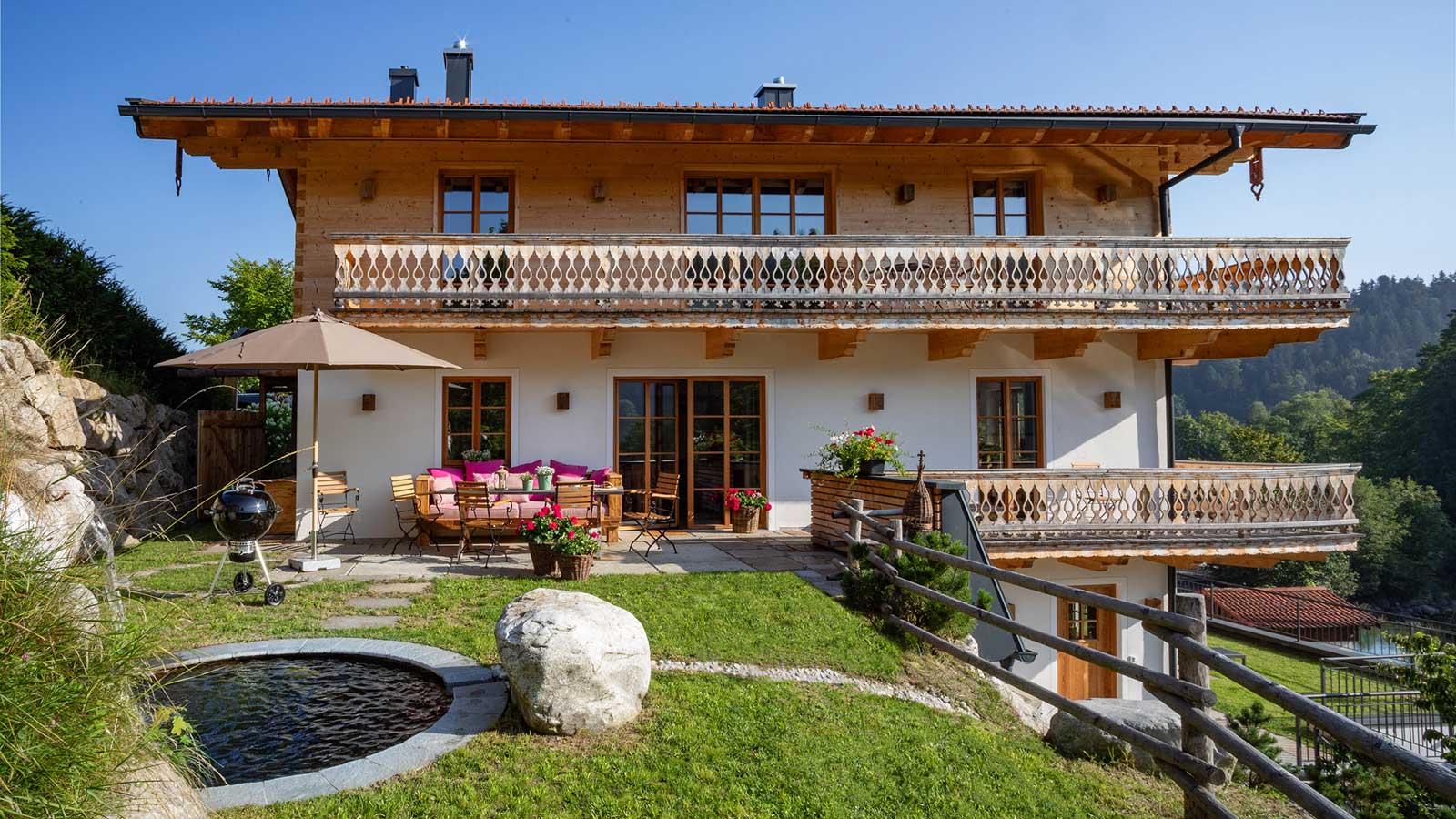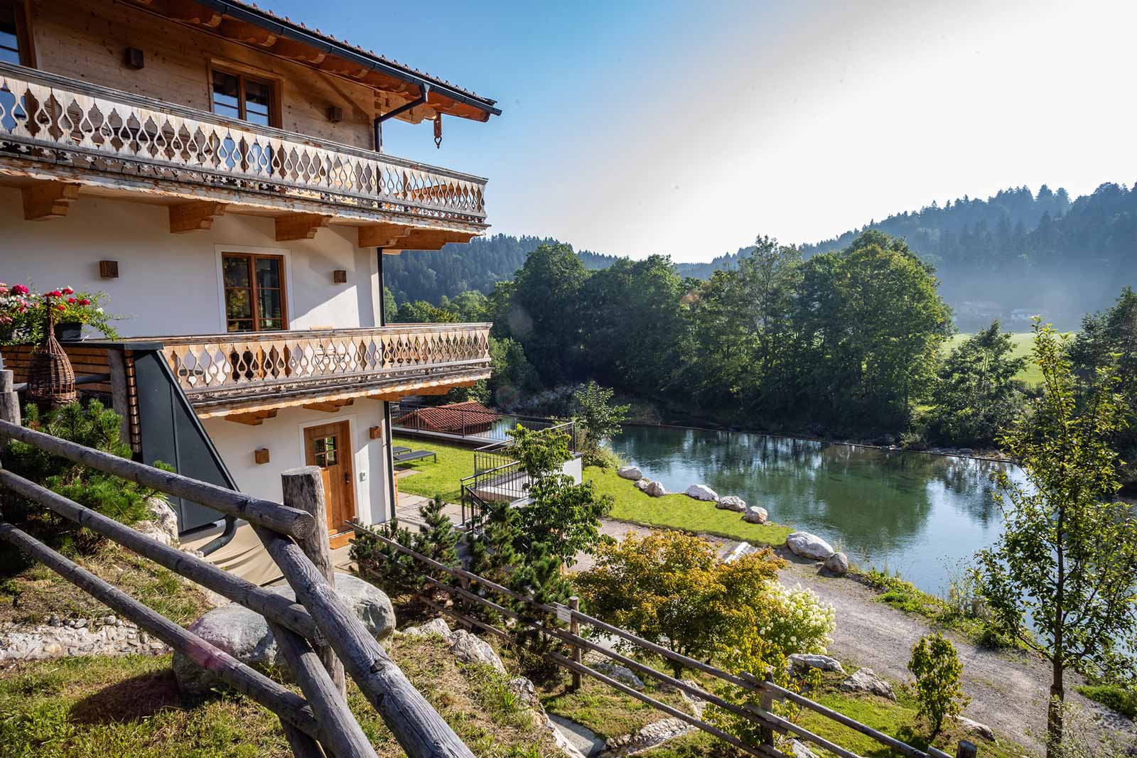 - Zugang zum Garten mit Blick auf den angrenzenden Fluss Leitzach