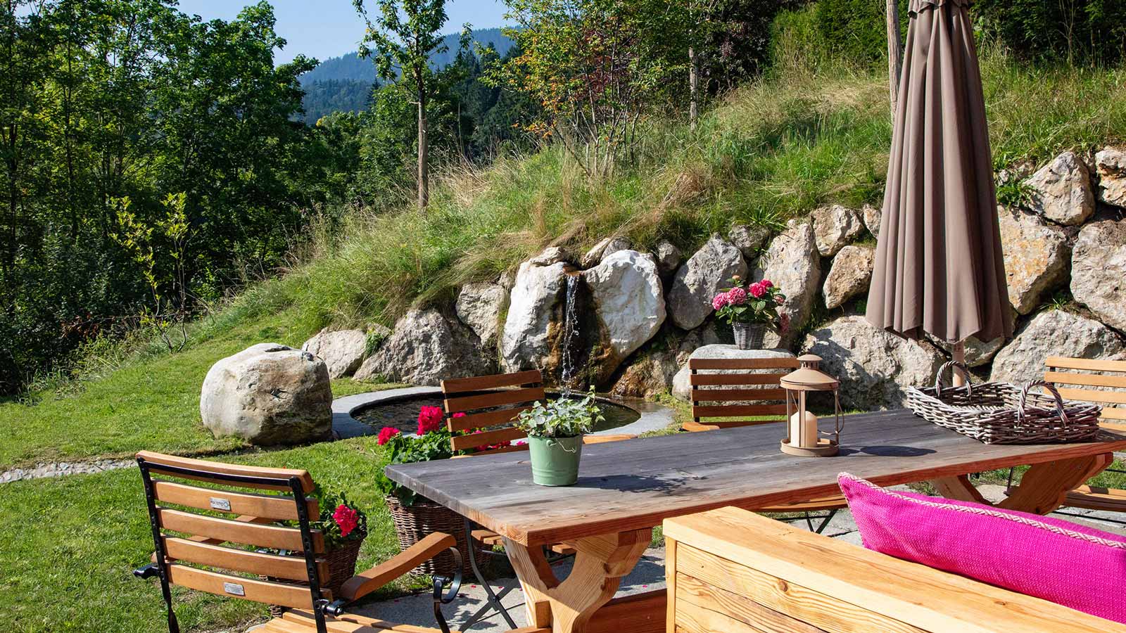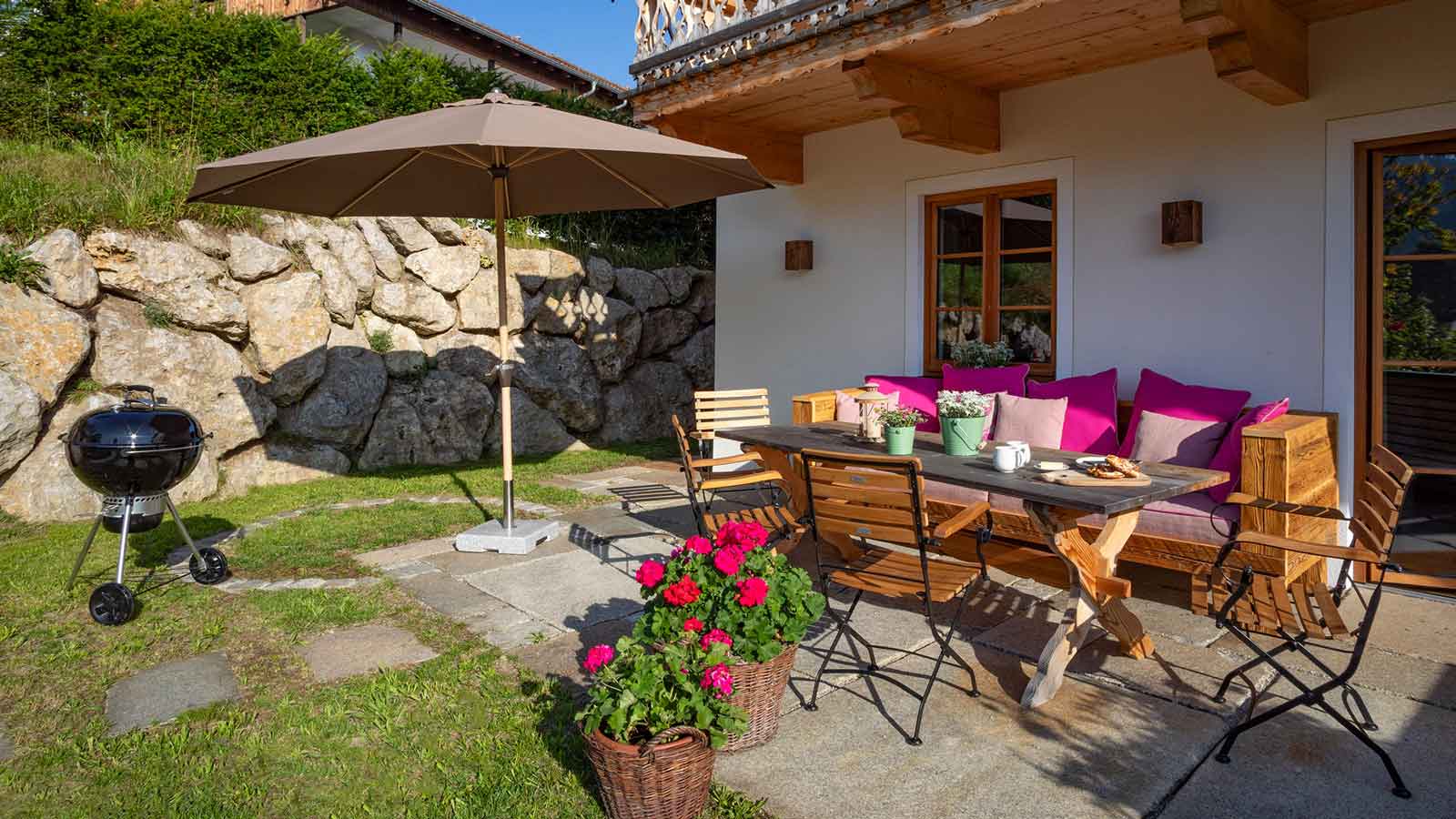 - Eigener Garten mit Tisch, Stühle, Liegen, Schirm & Gartenlounge