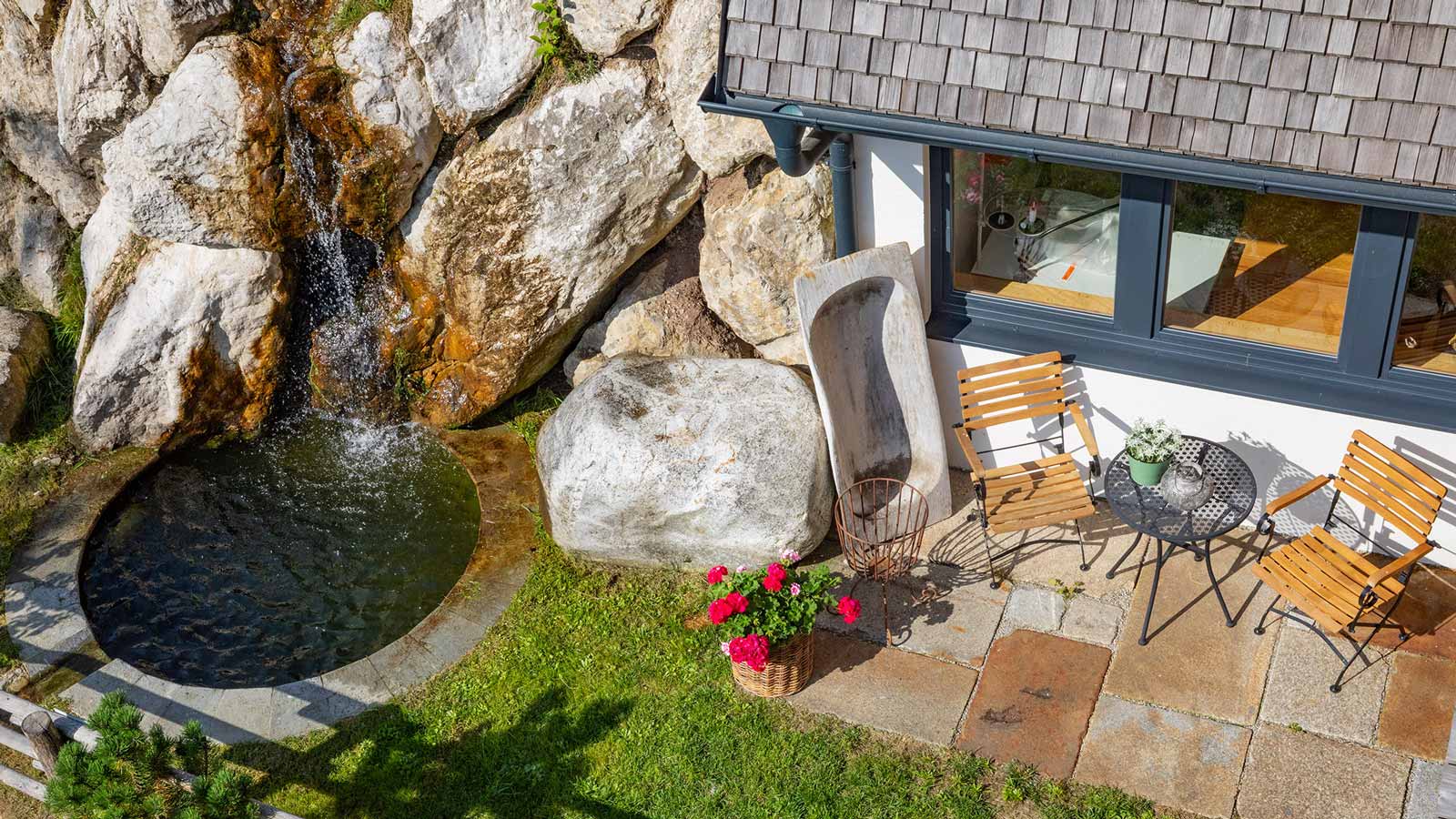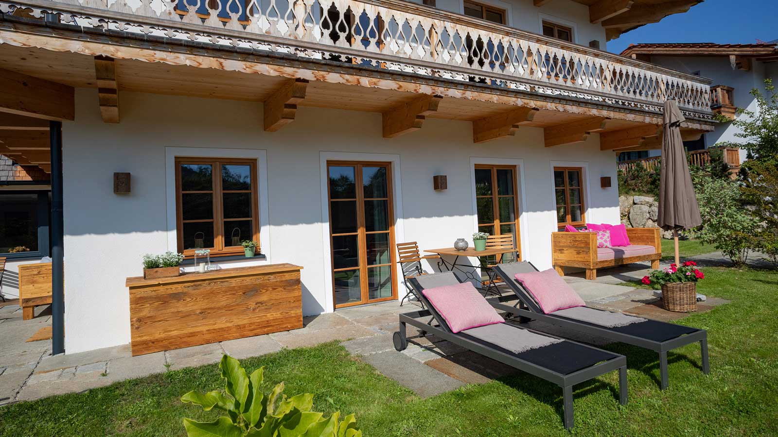 - Eigener Garten mit Tisch, Stühle, Liegen, Schirm & Lounge
